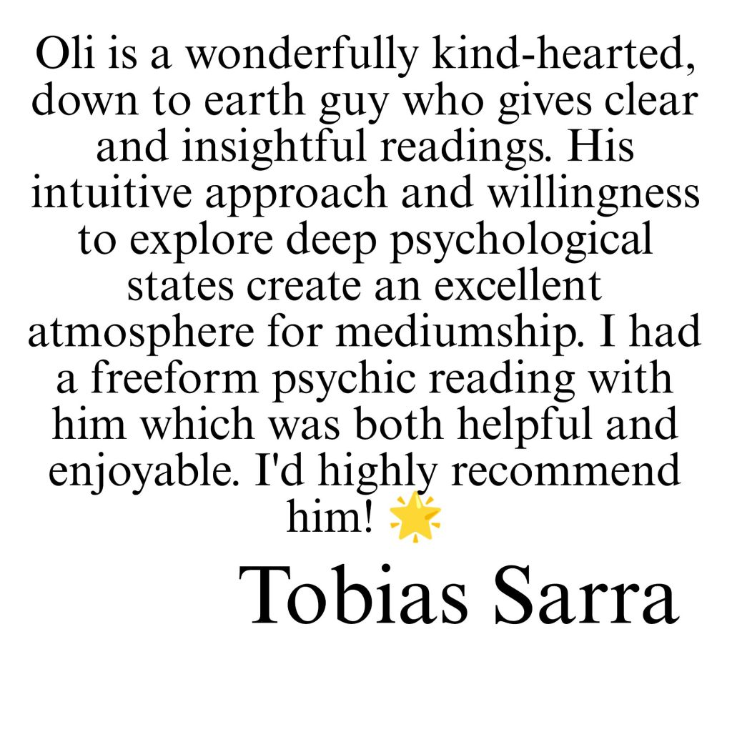 Oli is a Psychic Medium from Kent, England, and gives 1-2-1 readings that help people move forward with their lives. Oli senses the spirits of loved ones that have passed over to the other side and gives evidence of the afterlife and messages within his readings.